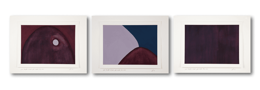 GemäldeSylvia Schwenks Projekt aus der Pandemiezeit—ein Ensemble von Gemälden auf Papier mit dem Titel “your thoughts become your world”—beginnt mit einer Vielzahl von Bildern. Sobald man einige davon gesehen hat, stellt man unweigerlich Beziehungen zwischen ihnen her, auch wenn jedes einzelne für sich bleibt. Und wer mehr von ihnen gesehen hat, weiß, dass sich diese Wahrnehmung fortsetzt, da mehr Beziehungen und mehr Unterscheidungen ins Spiel kommen. Und doch scheint die Entfaltung dieser Ähnlichkeiten und Besonderheiten weder zufällig noch unendlich zu sein. Wenn man von einem Gemälde zum nächsten geht, es vergleicht und kontrastiert, muss man sich an das erinnern, was man bereits gesehen hat, und vorhersehen, was als nächstes kommen könnte. Wenn Sie ehrlich sind, werden Sie nicht vorschnell zu dem Schluss kommen, dass alles gleich aussieht oder dass alle Unterschiede bedeutungslos sind. Ebenso ist es eine Frage der Fairness, dem Werk Aufmerksamkeit zu schenken: Nur dann werden Sie sehen, dass die Bilder nicht einfach miteinander in Beziehung stehen, sondern dass sie übereinander nachdenken, und es ist Ihre Aufgabe, dies geschehen zu lassen Genauer gesagt reflektieren die Bilder übereinander (und alles dazwischen) nach einem Prinzip der “Gleichheit”, das sich in sinnlichen und abstrakten Begriffen zugleich ausdrückt. Sie befragen sich gegenseitig nach ihren eigenen Möglichkeiten, sie untersuchen ihre Ungleichheiten aus allen Blickwinkeln, sie machen alle Kräfteverhältnisse umkehrbar und sie widersetzen sich geduldig jeder Begrenzung ihres Horizontes. Sie illustrieren diesen Sinn für Gleichberechtiung nicht, erist ihnen immanent.