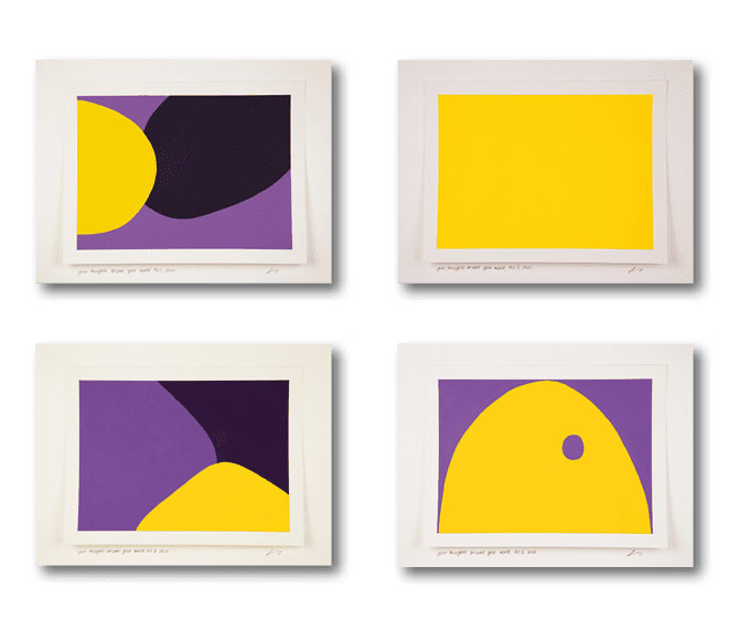 Works on paper start from €700 unframed. Curated weekly groupings, large works on canvas, and seasonal constellations are available by enquiry.
