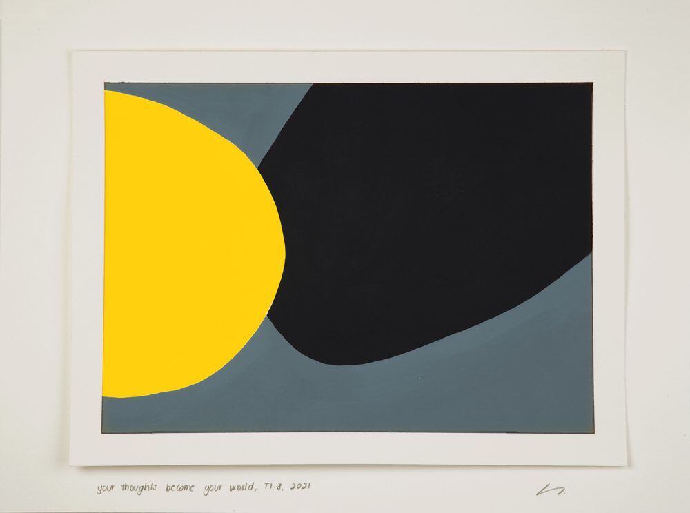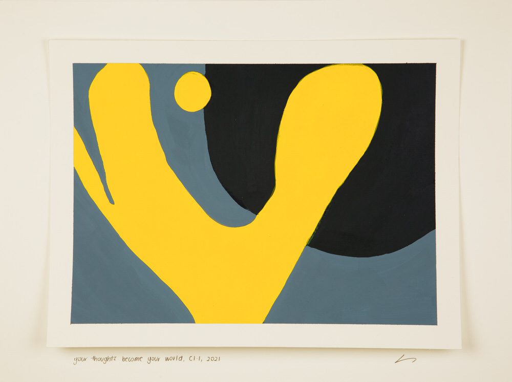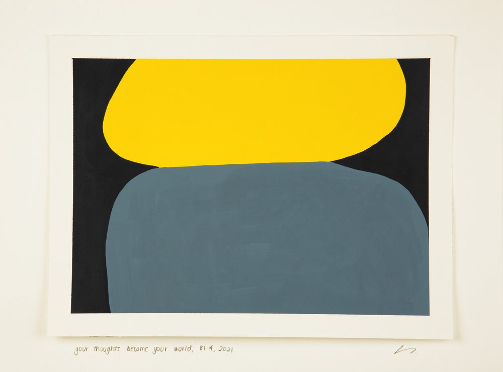 T1.5, Winter Week 7, acrylic on paper, your thoughts become your world by Sylvia Schwenk